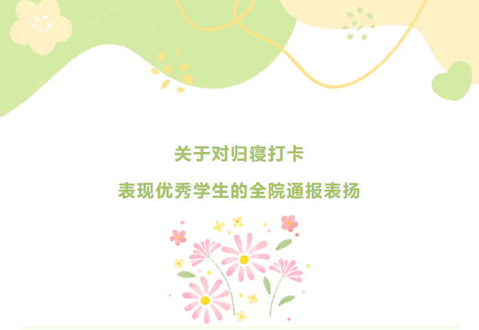 关于对归寝打卡表现优秀学生的全院通报表扬
