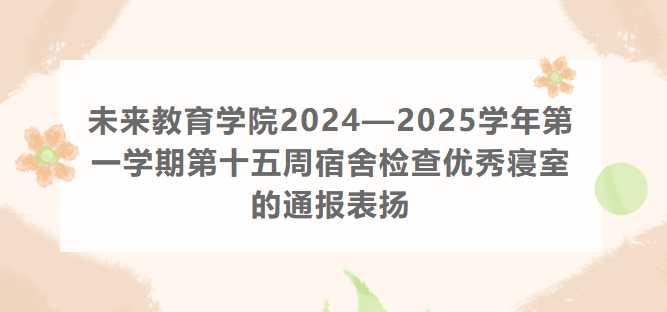 未来教育学院2024—2025学年第一学期第十五周宿舍检查优秀寝室的通报表扬