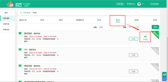 1. 网页端:网址zjy2.icve.com.cn登录职教云平台进入对应课程,点击考试进入考试答题界面。