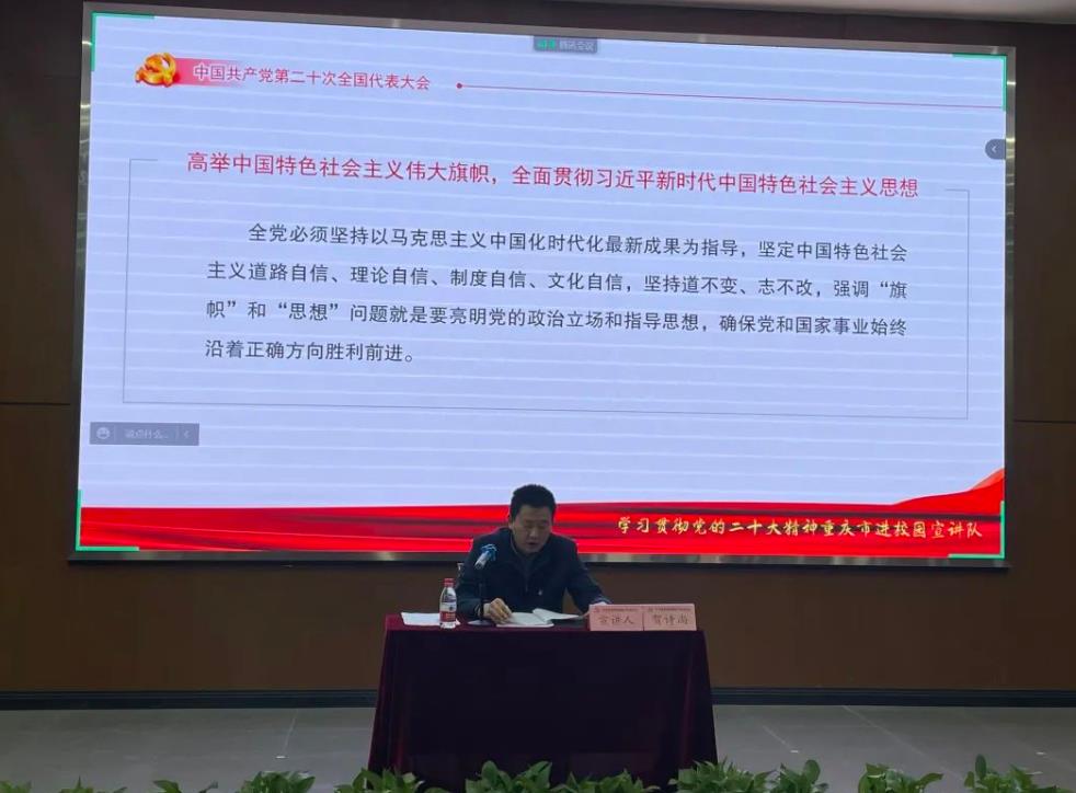 为深入学习宣传贯彻党的二十大精神,掀起学校师生学习宣传贯彻党的二十大精神热潮,2022年11月25日,党委书记邓泄瑶、党委副书记、副院长贺诗尚分别在学术报告厅、阶梯教室错时作报告宣讲,我院全体教职工及学生代..